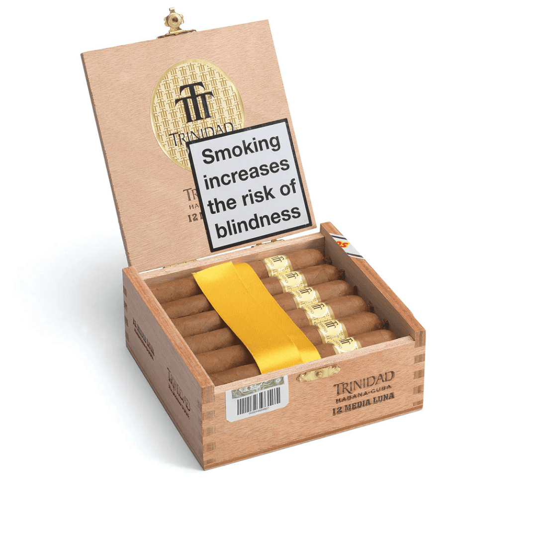 Every Media Luna is meticulously hand-rolled with 100% Cuban Vuelta Abajo long-filler tobacco, featuring Trinidad’s iconic pigtail cap and a warm caramel wrapper that glistens with natural oils. Cigar Aficionado awarded 90-91 points across multiple reviews, praising its sweet foundation and impeccable construction.